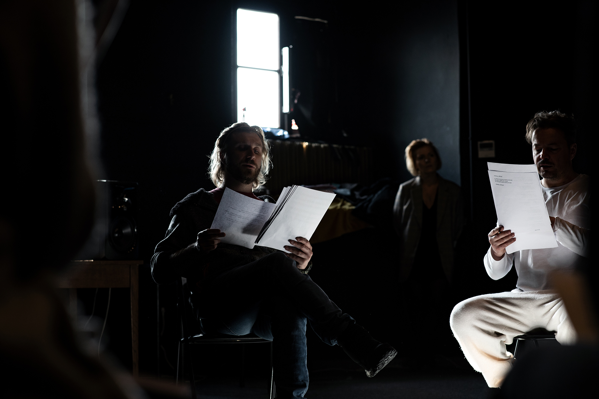 Reżyser Jarosław Gajewski: „Teatr często okazuje się >archeologią< języka. Bada bowiem objawianą przez język moc wspólnoty krwi, krajobrazu i majątku, moc wspólnoty marzeń i dążeń, a także dokonań, zbrodni, nienawiści i miłości”. Aktorzy, poza pracą dramatyczną nad tekstem i tworzeniem postaci, biorą udział w warsztatch wokalnych oraz choreograficznych. Premiera spektaklu "Historyja o chwalebnym Zmartwychwstaniu Pańskim": 7 kwietnia 2022. Fot. Marta Zbańska